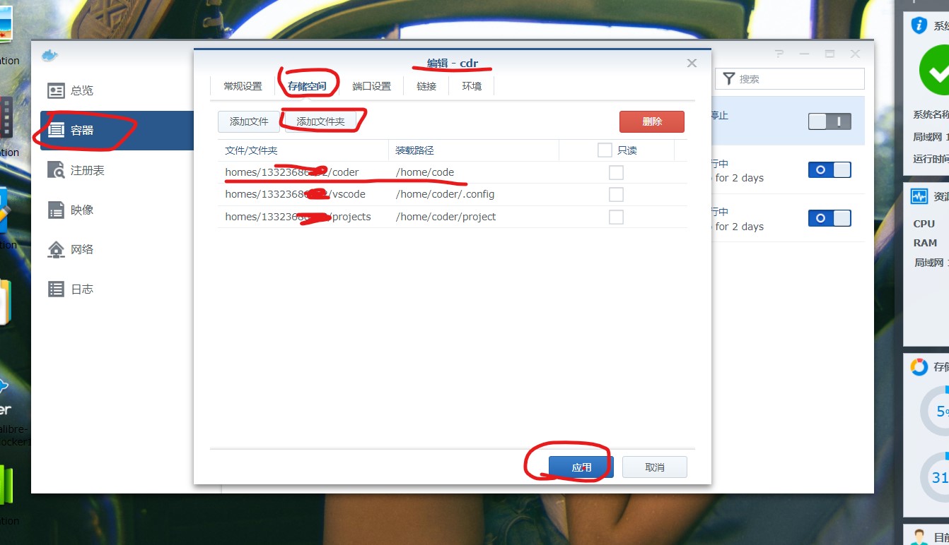 此时走到这一步如果没有问题应该就可以在群晖中看到你的容器已经跑了起来并且在映像一栏多了一个codercom的映像.