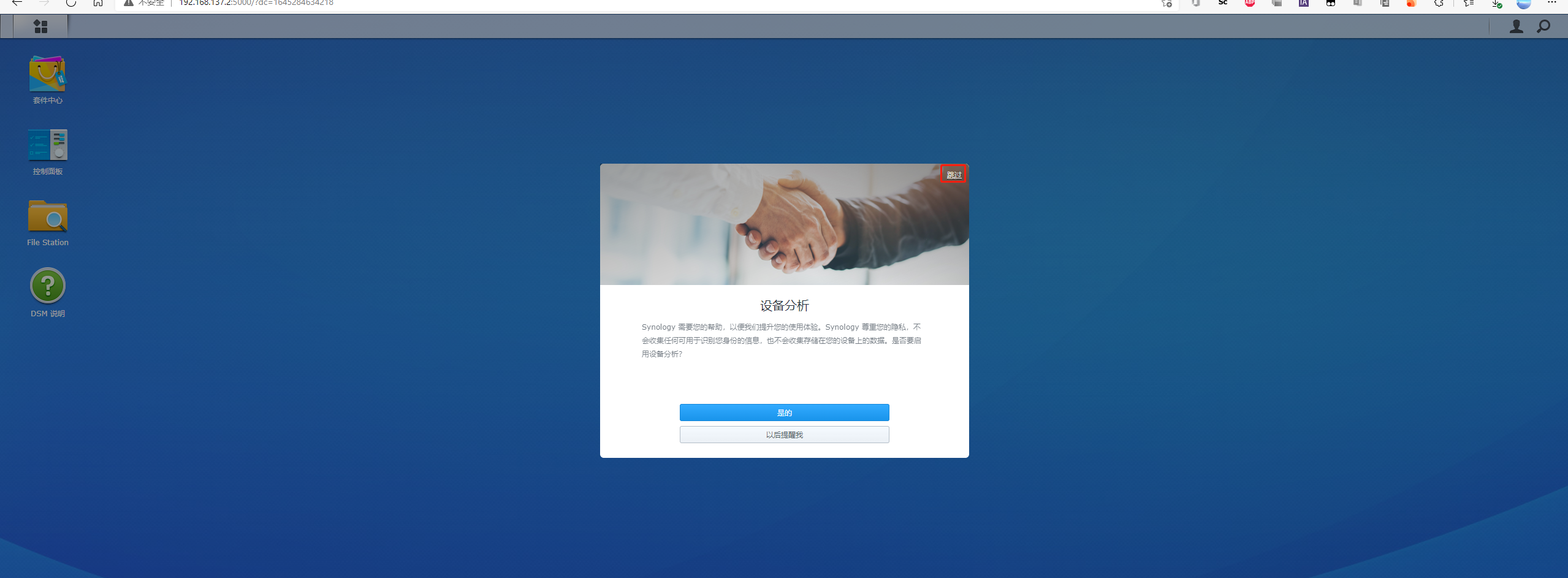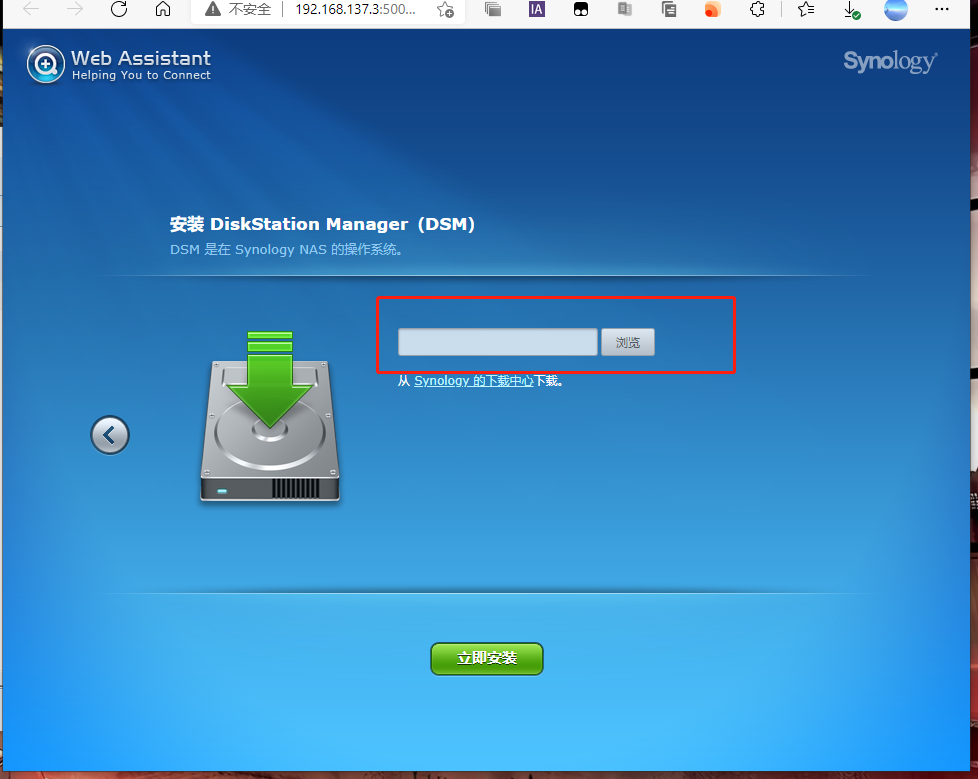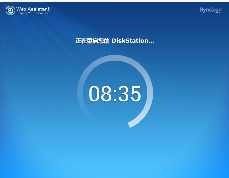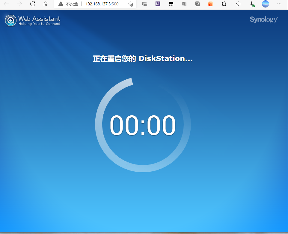 等待安装完成后,需要重新去搜索一下群晖主机,网页有可能出现如下状态(IP变更了所以无法刷新页面)