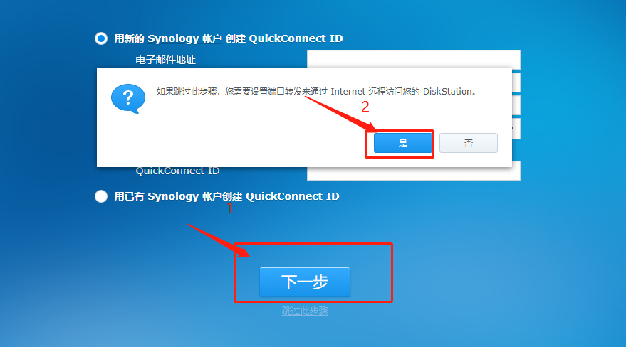 然后下一步即可,来到账号设置,因为时黑裙所以跳过此步骤