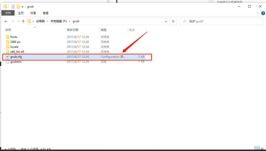 找到grub.cfg文件,拉到桌面使用及时本打开。