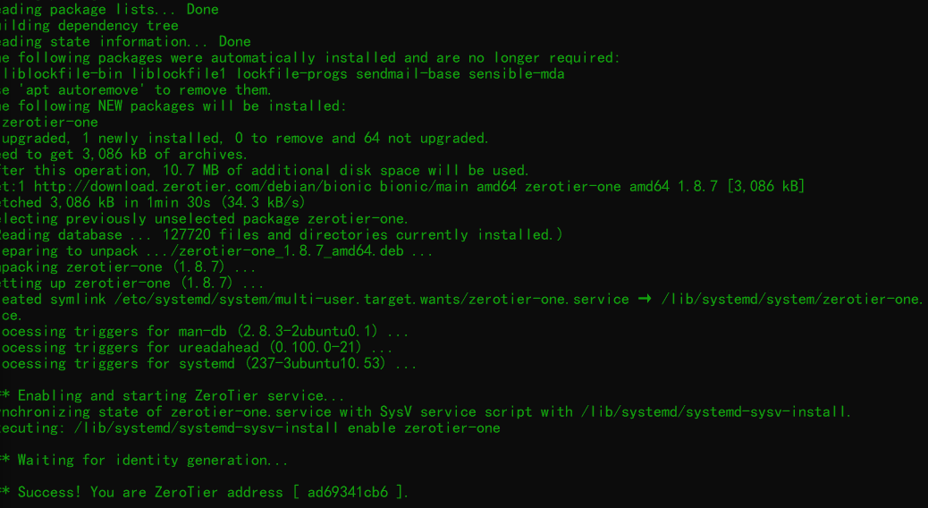curl -s https://install.zerotier.com/ | sudo bash