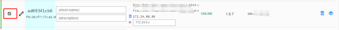 此时需要前往zerotier网页进行设备添加工作,根据设备IP找到后在前边方框内打勾。