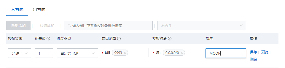 回过头你需要进行端口开放,因为在上述文件修改中设定端口为9993,现在在云服务供应商服务器管理部门找到安全组配置,添加一个开放端口