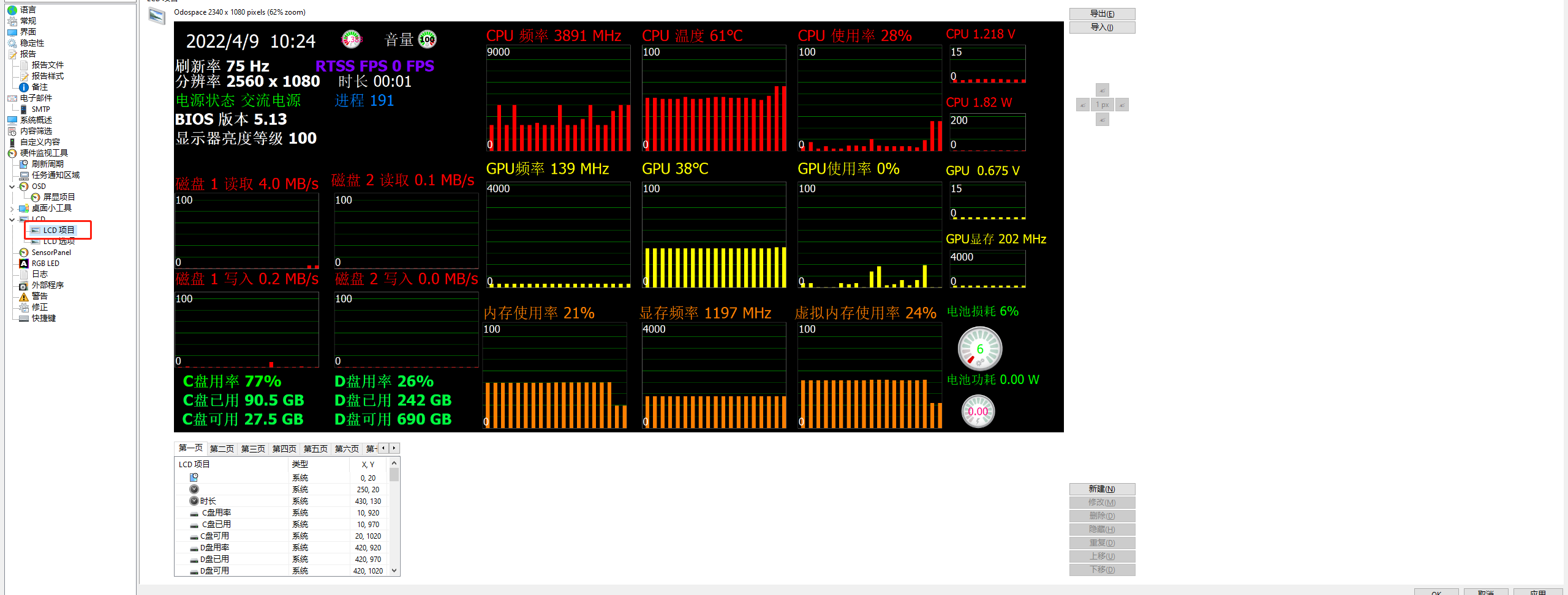 此后点击LCD项目即可找到配置界面,在配置界面可以使用左侧导入按钮直接导入我展示的那三个文件都可正常使用,也可使用该页面配置自己喜欢的内容。