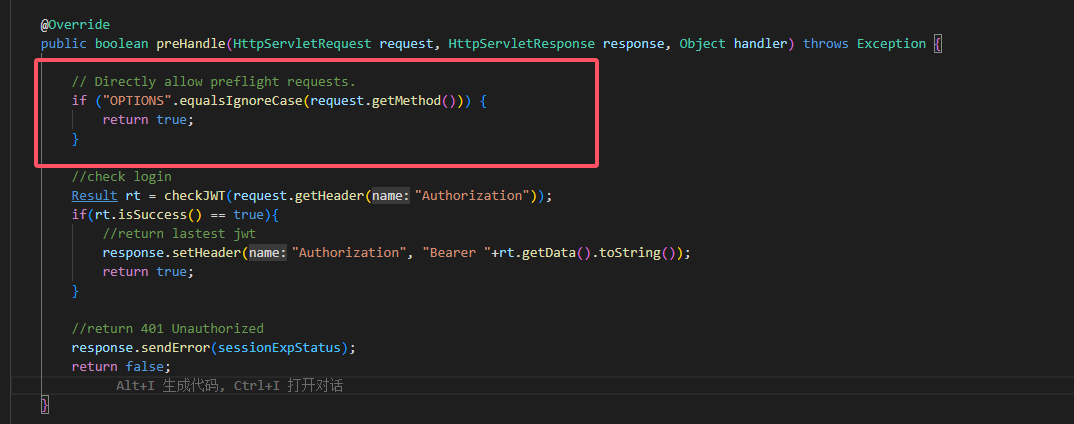 - LoginInterceptor拦截器中的拦截到request的方法是OPTIONS方法时,全部返回true。