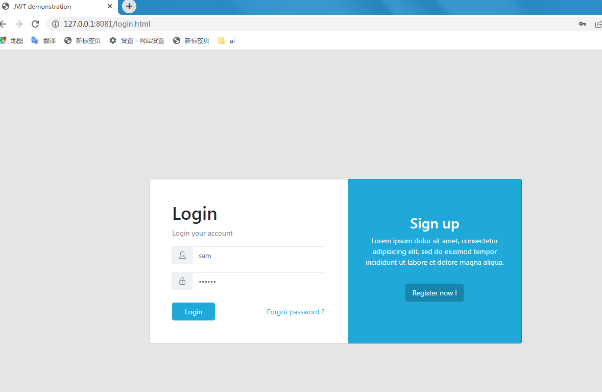 - 点击 "登录" 按钮,输入用户名:sam ; 密码:123456