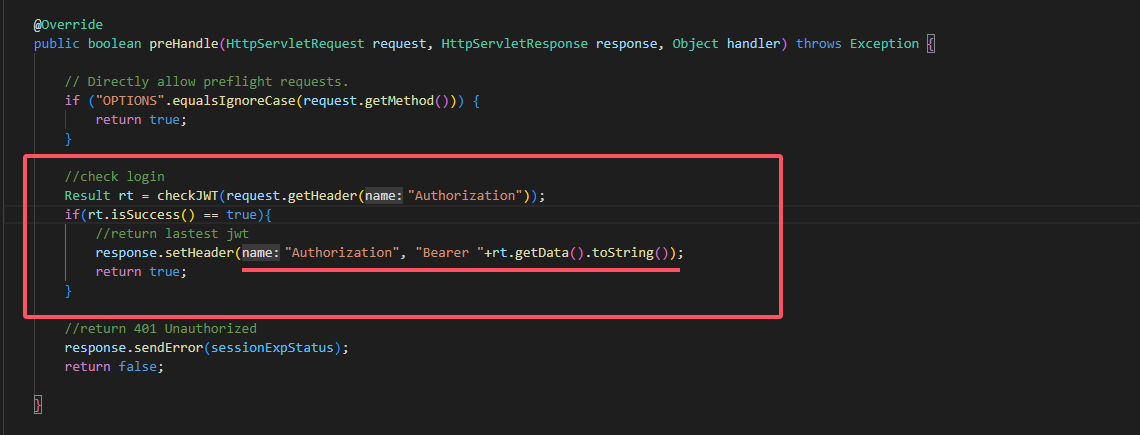 - LoginInterceptor拦截器中对认证通过的JWT进行自动刷新并返回给客户端。