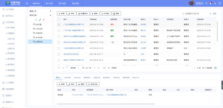 即客户沟通服务管理模块,可实现线索转换、制定任务计划,查询任务历史、沟通记录等,同时可扩展呼叫中心,收发短信或邮件,实现企业内外与客户沟通的统一管理,较大程度上辅助业务做好客户维护。