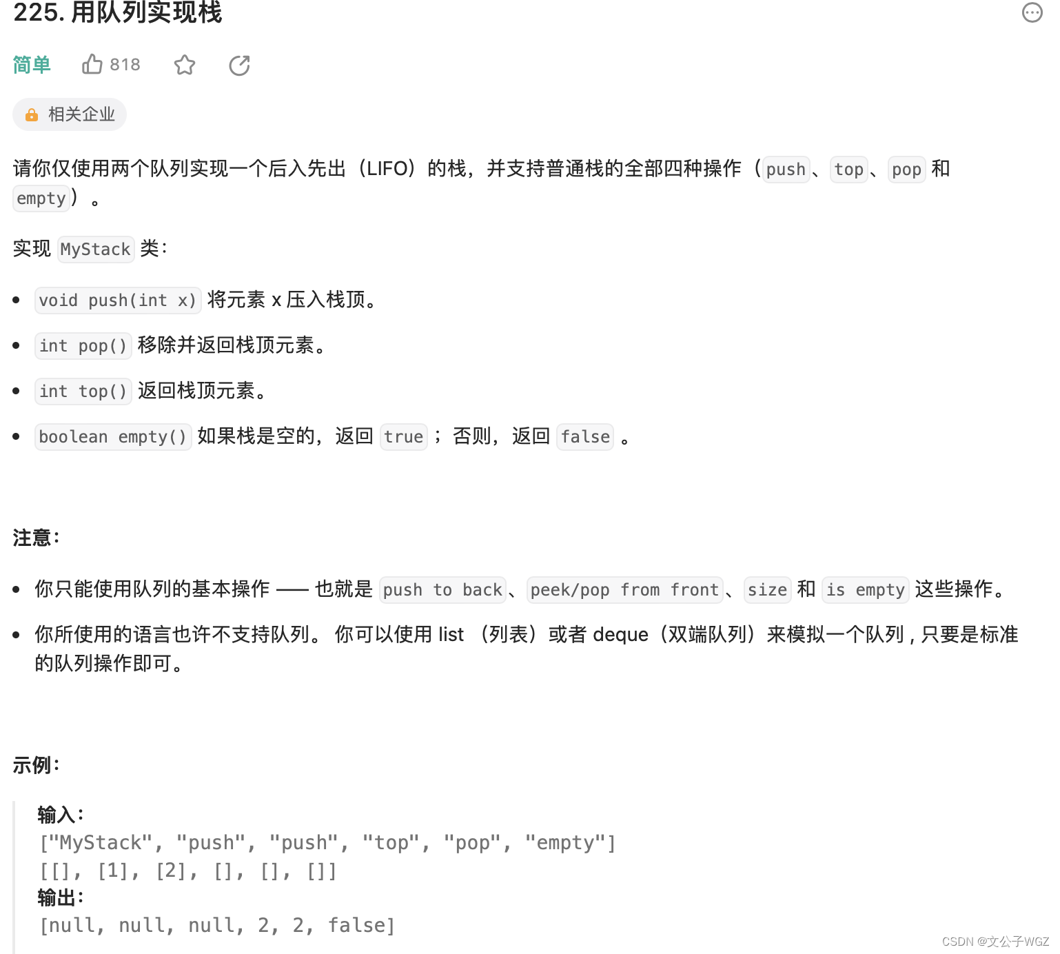 例如LeetCode232题目链接