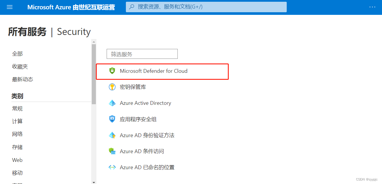 在右侧栏目中找到Microsoft Defender for Cloud,并点击。