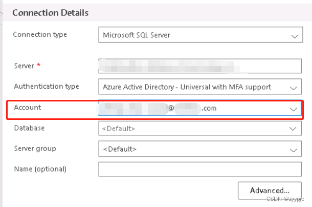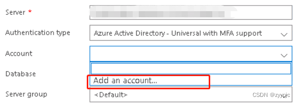 | AAD-Universal with MFA support | 用AD域账号(如公司已经配置好的邮箱)连接 |