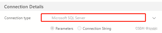 默认选项是Microsoft SQL Server,因为我们连接的是微软数据库,第二行中我们选择Parameters(参数),进而继续填写其他的参数。如果选择Connection String,那就是另一种填写方式,此处暂时不展开介绍。