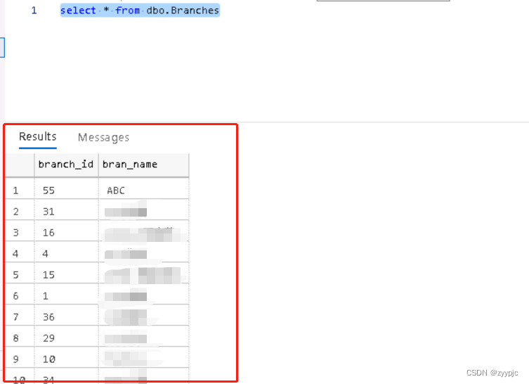2. 运行一条简单SQL查询(1)中的dbo.branch表