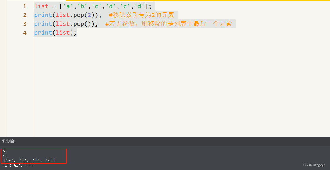 (3)移除列表中指定索引位置的元素后返回该元素的值
