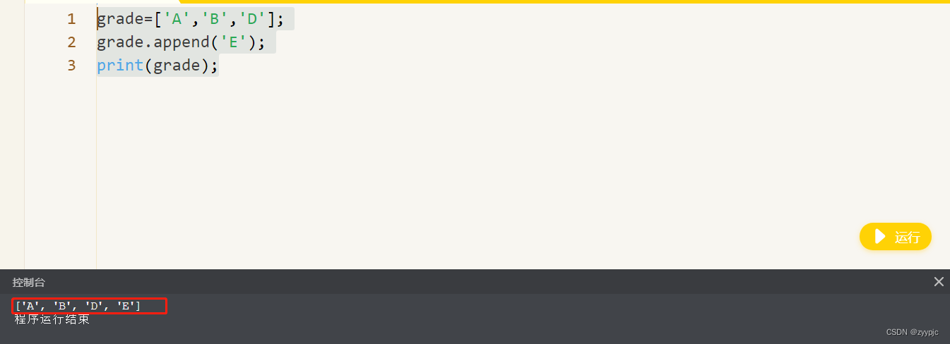 假设存在列表grade = ['A','B','D'],从而进入如下例子