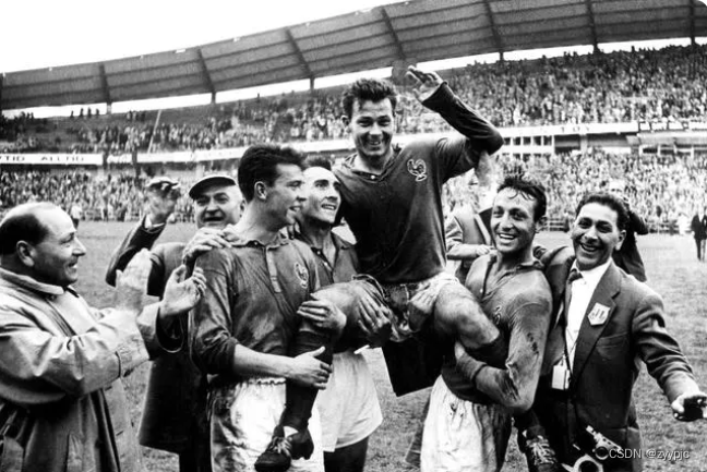 1958年世界杯,法国前锋方丹在六场比赛中打入了惊人的13个进球,小组赛首战对西德的比赛中,他上演大四喜,狂轰四个进球,这个临时递补进入国家队,穿着队友的球鞋出场的传奇前锋,他的神奇记录一直保持到现在。