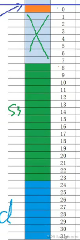 那么什么东西是偏移量呢,在内存的开始位置往后每一个内存单元,就相当于一个偏移量,类比为很多个格子,但是最开始的那个内存单元所对应的偏移量是0而不是1,依次往下。