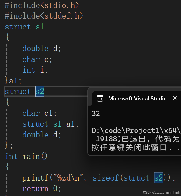 下面根据规则4来解释为什么struct s2的大小是32个字节: