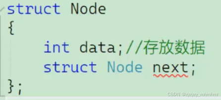 我们会发现一个问题,我的Node next中包含了无数个date和Node next,那么这个结构体的内存 大小是多少呢,我们并不知道,所以这样的自引用方式肯定是不对的。