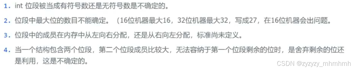 1. 位段的成员可以是int, unsigned int,signed int 或者是char等类型。