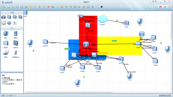 在FW1,R1,SW1,SW2,SW3设备上启用OSPF路由协议以确保不同设备间的网络连通性。 ①启用OSPF路由协议,设定router-id并宣告对应网段至区 R1(config)#router-id10.10.1.1 R1(config-router)#ospf1 R1(config-router)#area0 R1(config-router)#network10.1.1.10.0.0.0 R1(config-router)#network10.2.1.10.0.0.0 R1(config-router)#network10.10.1.10.0.0.0 R1(config-router)#network10.10.1.50.0.0.0 ②宣告对应网段至区域1并对该区域使用区域验证。 R1(config)#ospf1 R1(config-router)#area0 R1(config-router)#network10.20.1.10.0.0.0 R1(config)#interfact Ethernet0/0/1 R1(config-if)#ipaddress10.20.1.1 255.255.255.0