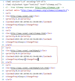 在此选择织梦园模板网进行试验,url是http://www.seomj.com/sitemap.xml,打开后看到的页面如下: