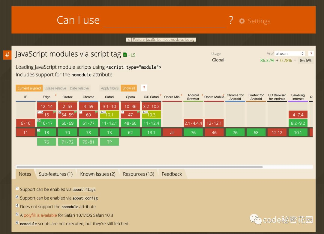 我们先看看客户端的支持情况,这里推荐大家到 Can I Use 直接查看,下图是 2019/11 的截图。
