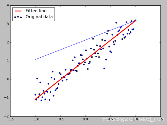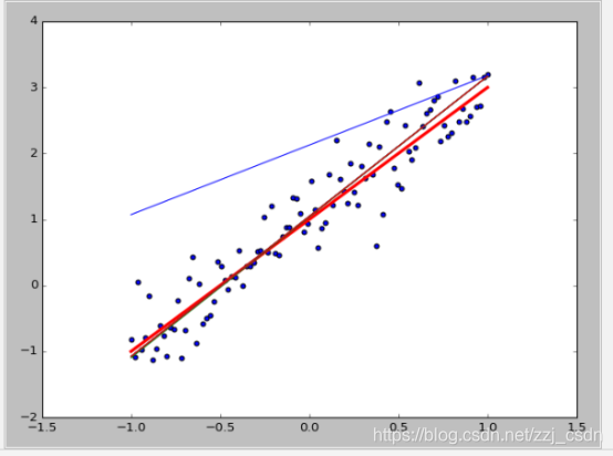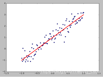 w=2.0, b=1, 并加入一个噪声,噪声的最大振幅为0.4