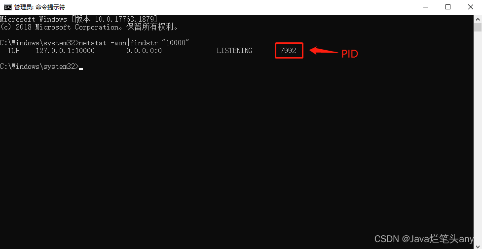 回车执行该命令,最后一位数字就是 PID, 这里是 7992。