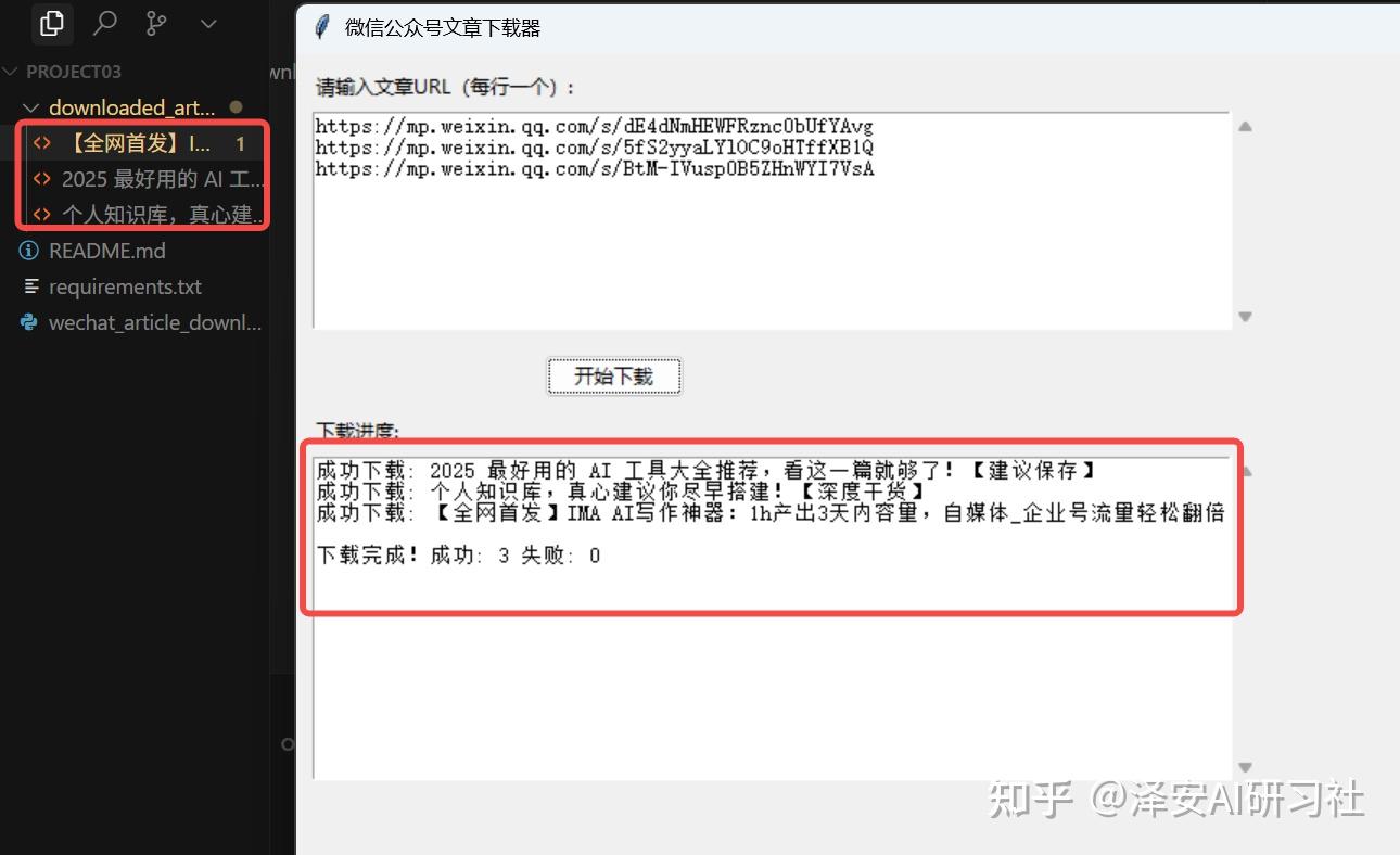 提示词:请你给我写一个 python 小工具,来实现批量下载公某号的 urls 的内容,并保存到本地,需要 ui 页面,不要使用 pyqt6