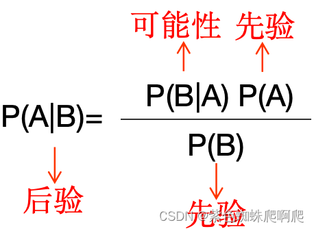 - 后验概率(posterior probability):指某件事已经发生,想要计算这件事发生的原因是由某个因素引起的概率。
