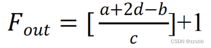 其中,[]是取整符号,输入特征图尺寸为a*a,卷积大小为b*b,步幅stride=c,填充padding=d。
