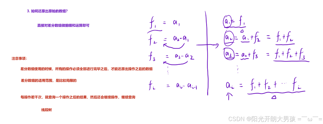 由差分数组的定义得 : 原数组 a 中的每⼀项: