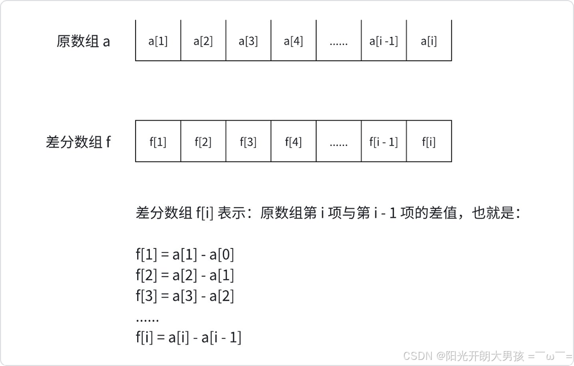- 创建差分数组,根据定义: f [i] = a[i] − a[i − 1]