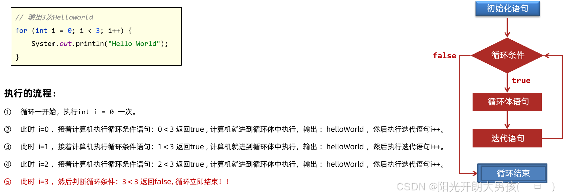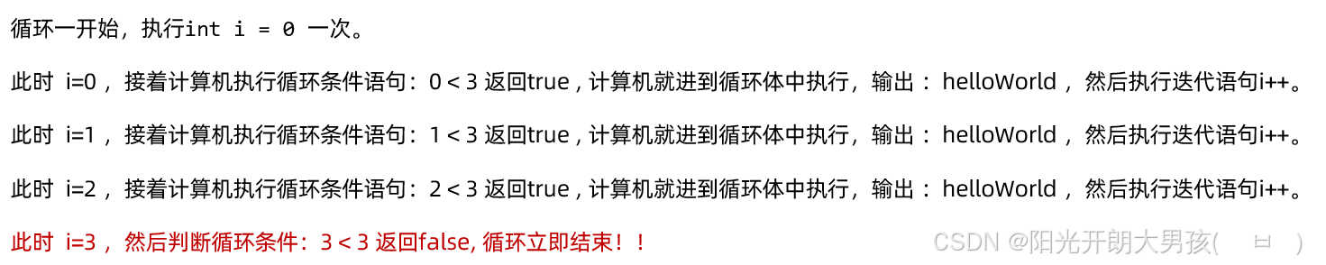 i=3时:i<3为false; 外层循环结束