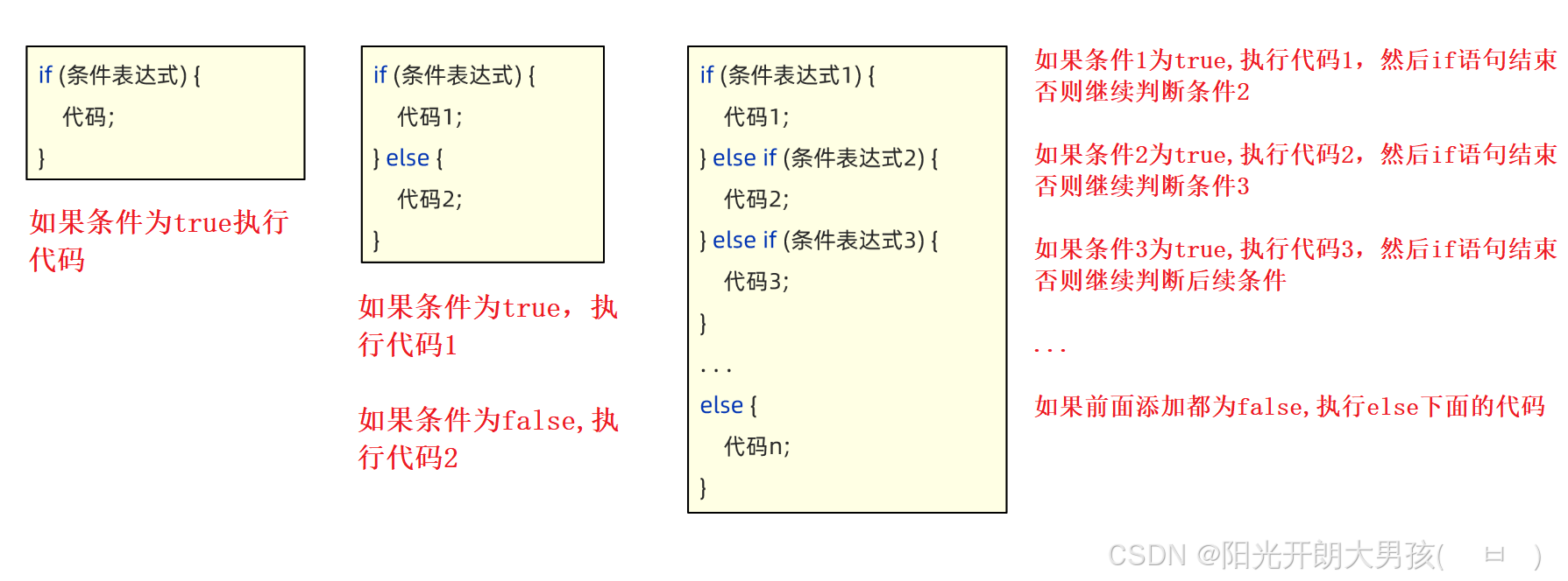 如果 条件表达式1 为true,就执行下面的代码1;