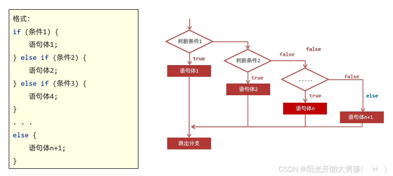 if 第三种形式的代码格式,和执行流程如下图所示
