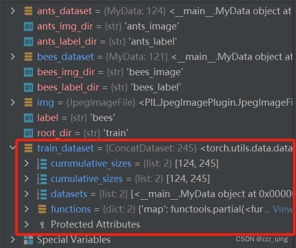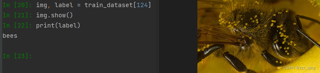 把蚂蚁和蜜蜂的dataset合并后, 前0-123组数据是蚂蚁,124及以后组的数据是蜜蜂。分别输出train_dataset[123]和train_dataset[124],结果如下: