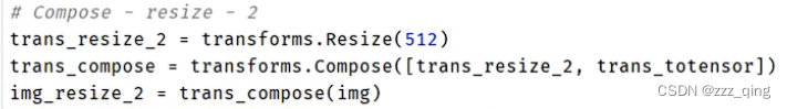 用compose()可以把resize和图片类型变换(PIL→tensor)这两个操作一步做到位,如下图: