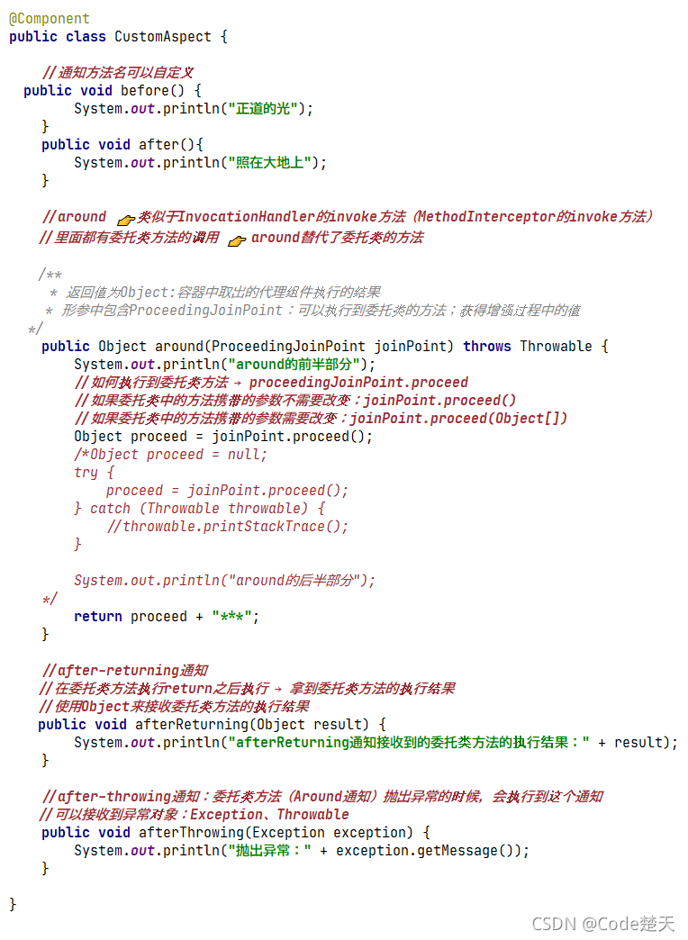 after-returning通知不去做执行委托类结果的修改,只是去获得,around通知才去做对结果的修改